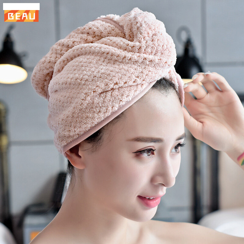 BEAU# Micro Fiber Hair Towel Hair Drying Towels Quick Dry Hat Cap Twist Head Towel with Button