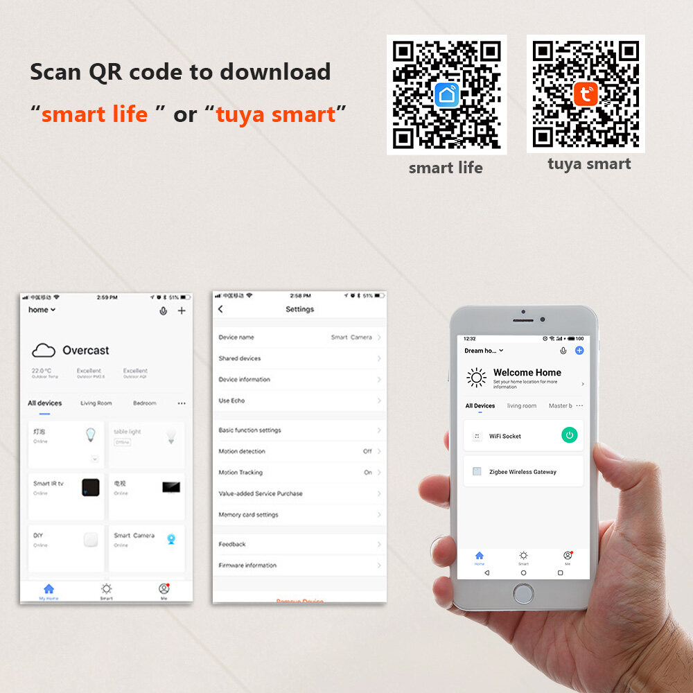 One App to Control All:Control all of Tuya WiFi and Tuya ZigBee devices by free app Smart Life. Easy to manage your smart home appliances.