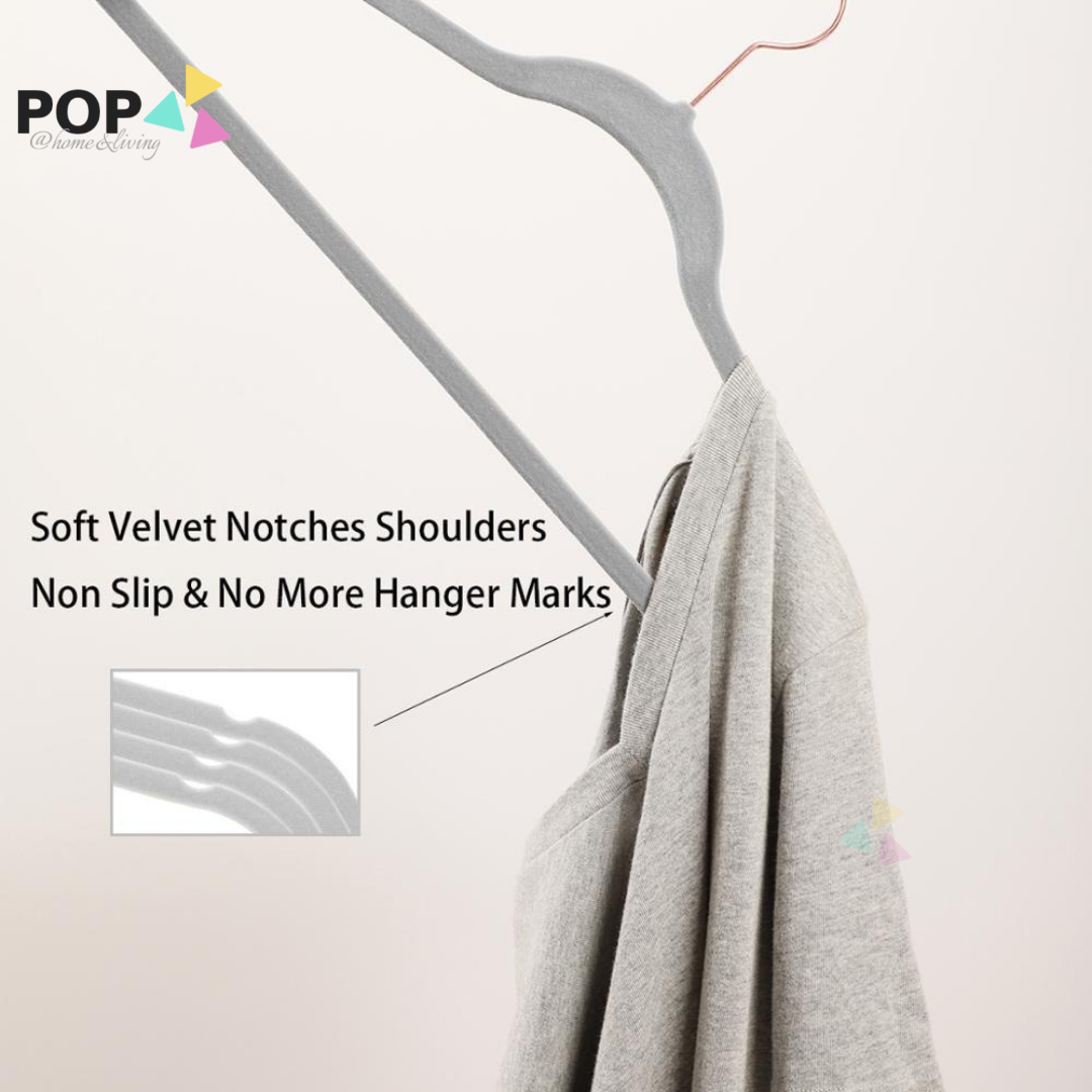 25 / 50 PC SET Rose Gold Silver Premium Non-Slip Velvet Clothes Hanger Slim Pink White Black Grey Anti-Slip Hangers Wardrobe Thin Closet Laundry Organiser Organizer CNY Spring Cleaning Raya Space Save