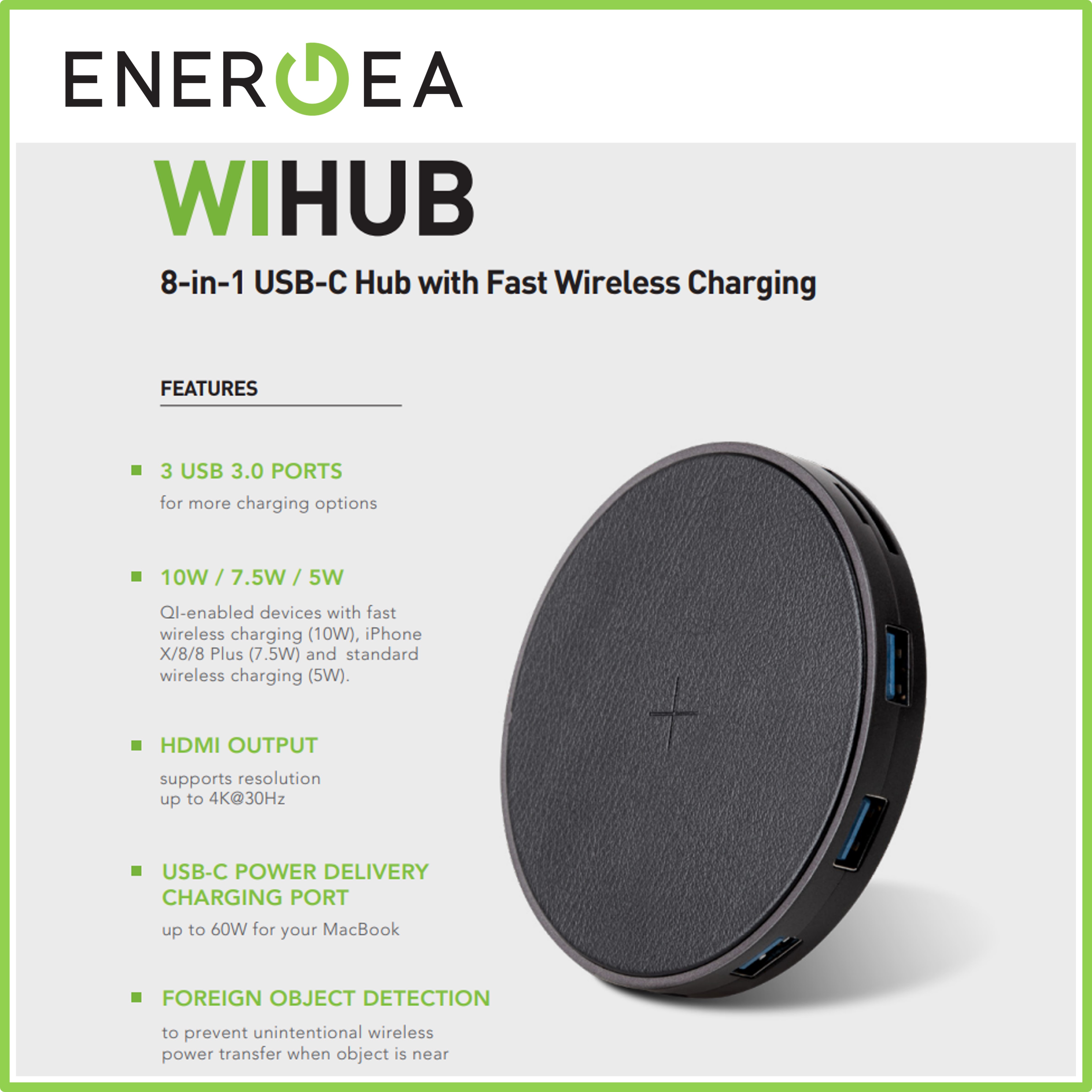 Energea Wihub 7-in-1 Aluminum 3.1 USB-C Hub with Wireless Charging Pad