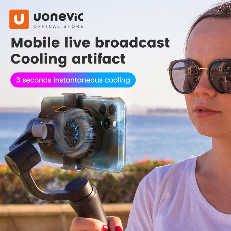 Uonevic 2021 Mobile Phone Cooler Semiconductor Radiator Cooling Fan Mute Stretchable Game Pad Holder Bracket Double Fan For Smartphone X2