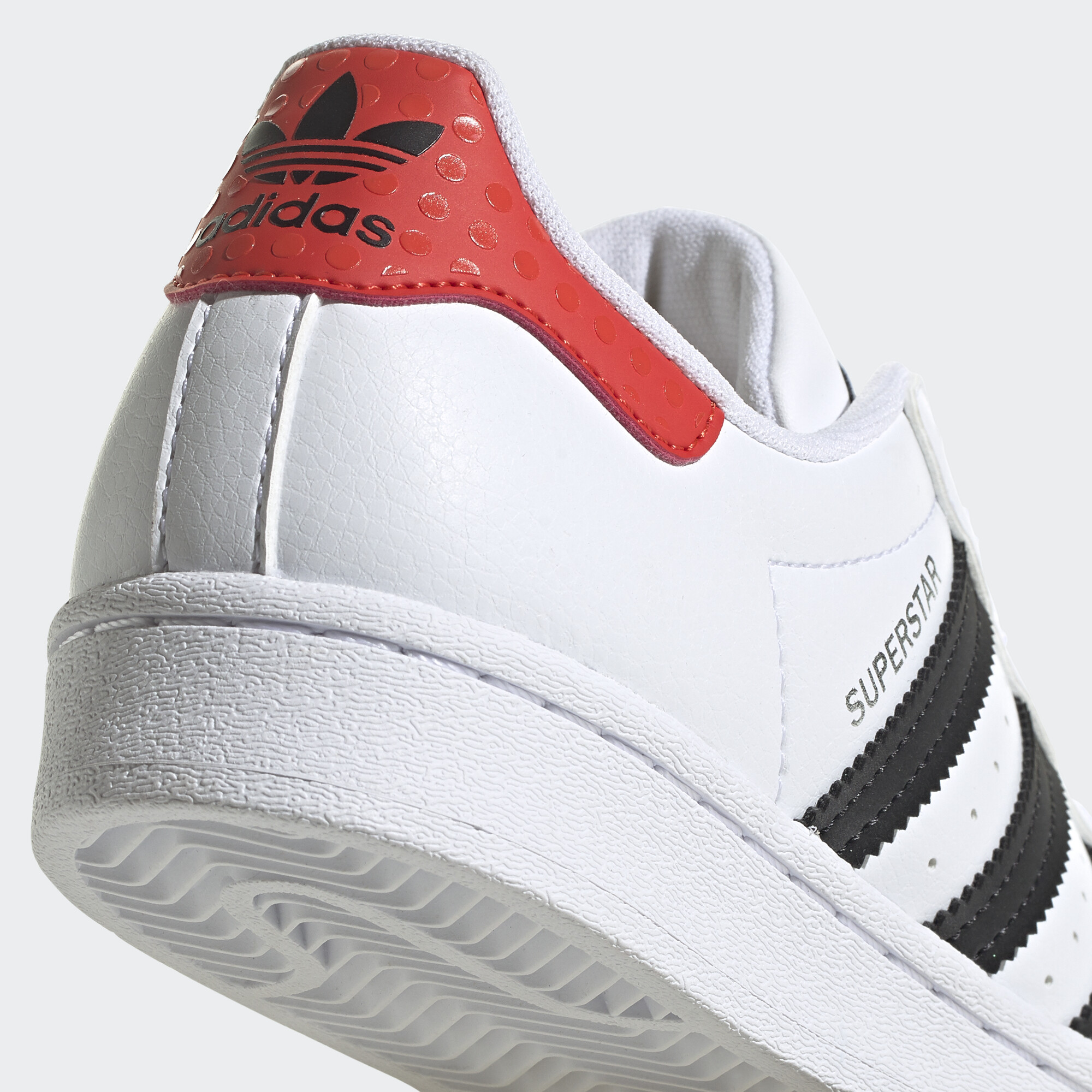 Style, fun and comfort is not a bad combination to have. Superstar LEGO® shoes feature iconic 3-Stripe branding and playful design details with LEGO brick-inspired texture on the shell-toe and heel-tab. Comfortable sockliners have been designed to allow for wearing around the clock – ideal for patio-to-playground scenarios.