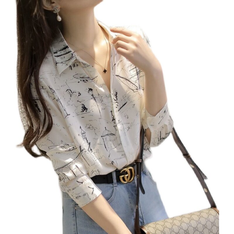 Super Value Women Loose Printed Long Sleeve Polo Shirt