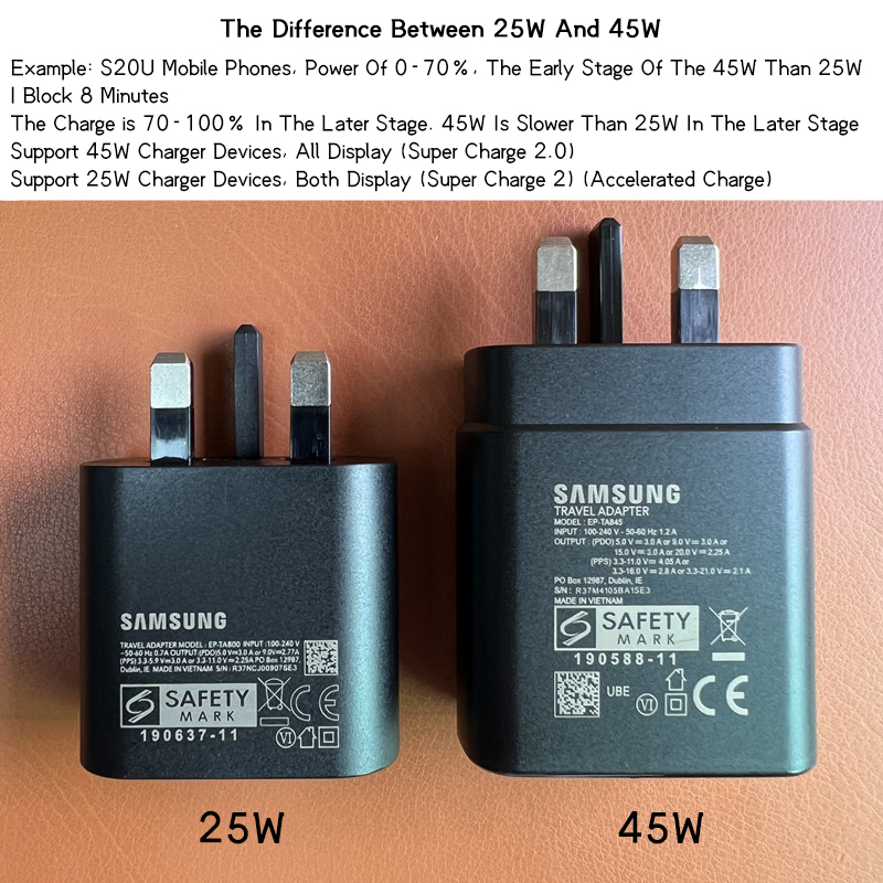 • Compatible Models:Super Fast Charging 2.0 max. 45W compatible with Galaxy Note 10+, Note 10+ 5G, A91 and future compatible devices / Super Fast Charging max. 25W compatible with Galaxy Note 10, Note 10 5G, S10 5G, A90 5G, A80, A70, Book S, and future compatible devices