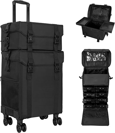 【Professional Rolling Makeup Case】The 2-in-1 Makeup Travel Case is designed for professional makeup artists, nail technicians and hair barbers/stylists.