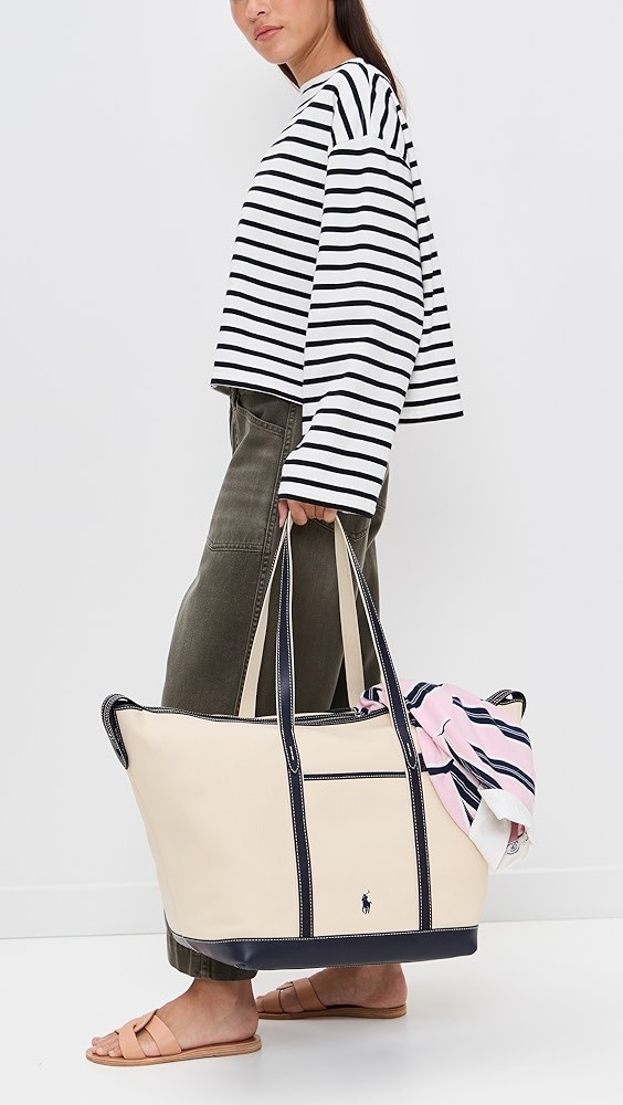 Leather Trim Canvas Large Shopper Tote